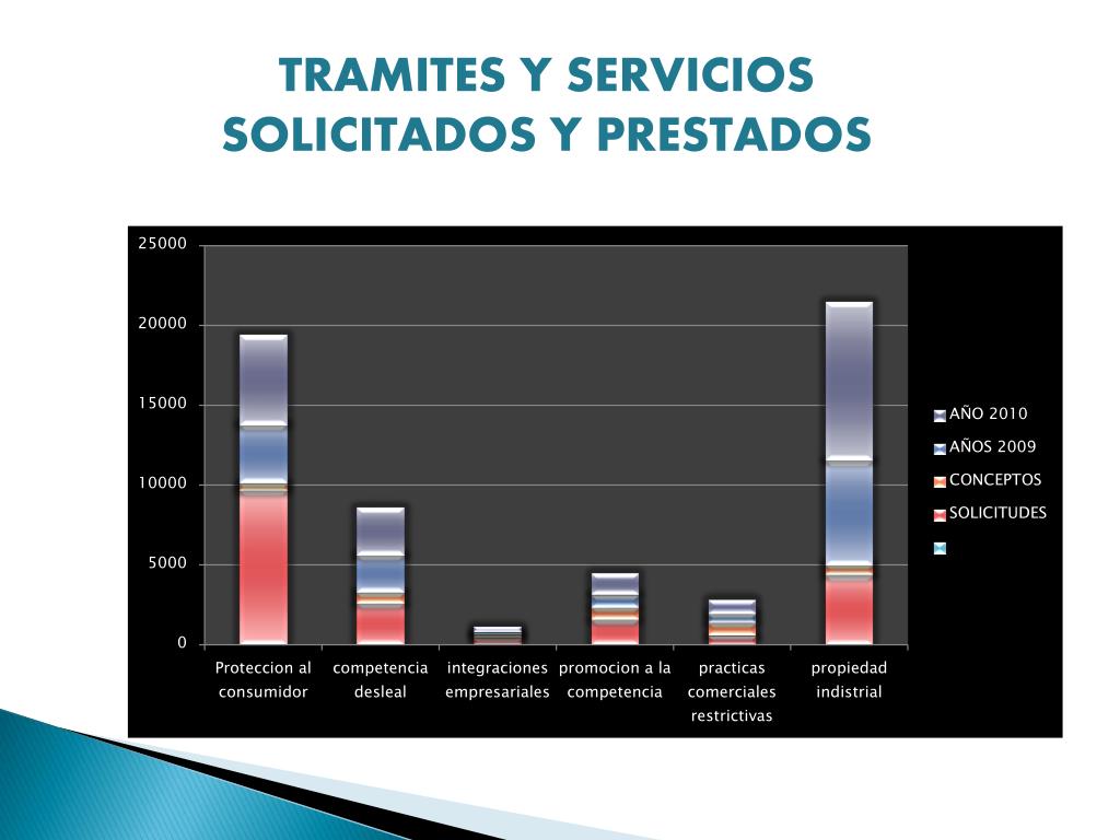 PRINCIPALES LOGROS Evacuación de trámites en materia de protección de la competencia1 con un crecimiento en los niveles de atención del 47.6% frente a lo evacuado en el 2009, con una eficiencia. Evacuación de solicitudes de nuevas creaciones con un crecimiento en los niveles de atención del 8.5% frente a lo evacuado en el 2009, con una eficiencia en productividad del 118.0% y un impacto por la labor adelantada del 5.9%. Desarrollo y mejoramiento de los servicios informáticos suministrados a través de Internet, los sistemas de información de gestión institucional