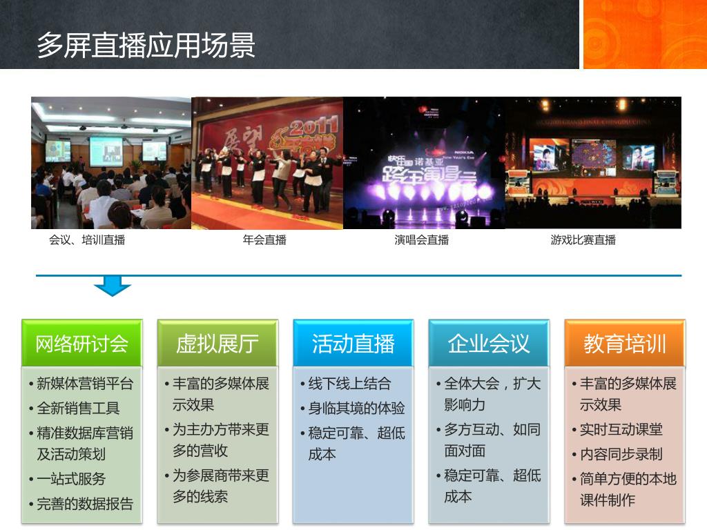 多屏直播应用场景 会议、培训直播 年会直播 演唱会直播 游戏比赛直播