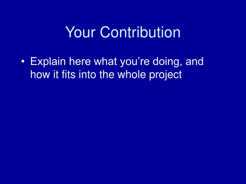 Your Contribution • Explain here what you’re doing, and how it fits into the whole project
