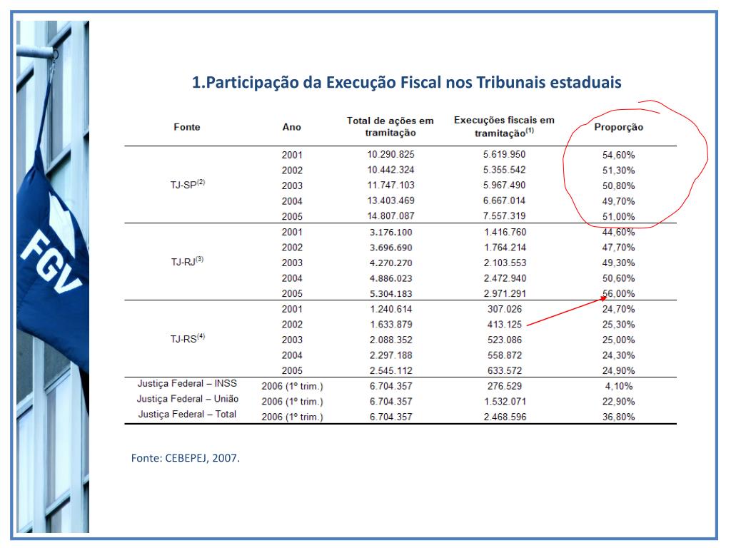 Participação da Execução Fiscal nos Tribunais estaduais Fonte: CEBEPEJ, 2007.