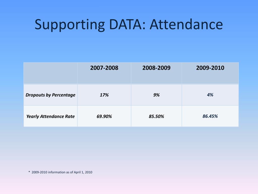Supporting DATA: Attendance *2009-2010 information as of April 1, 2010
