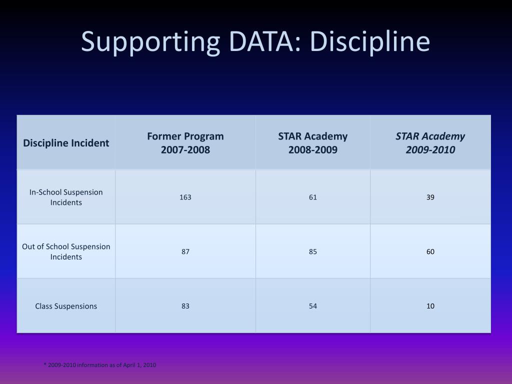 Supporting DATA: Discipline * 2009-2010 information as of April 1, 2010