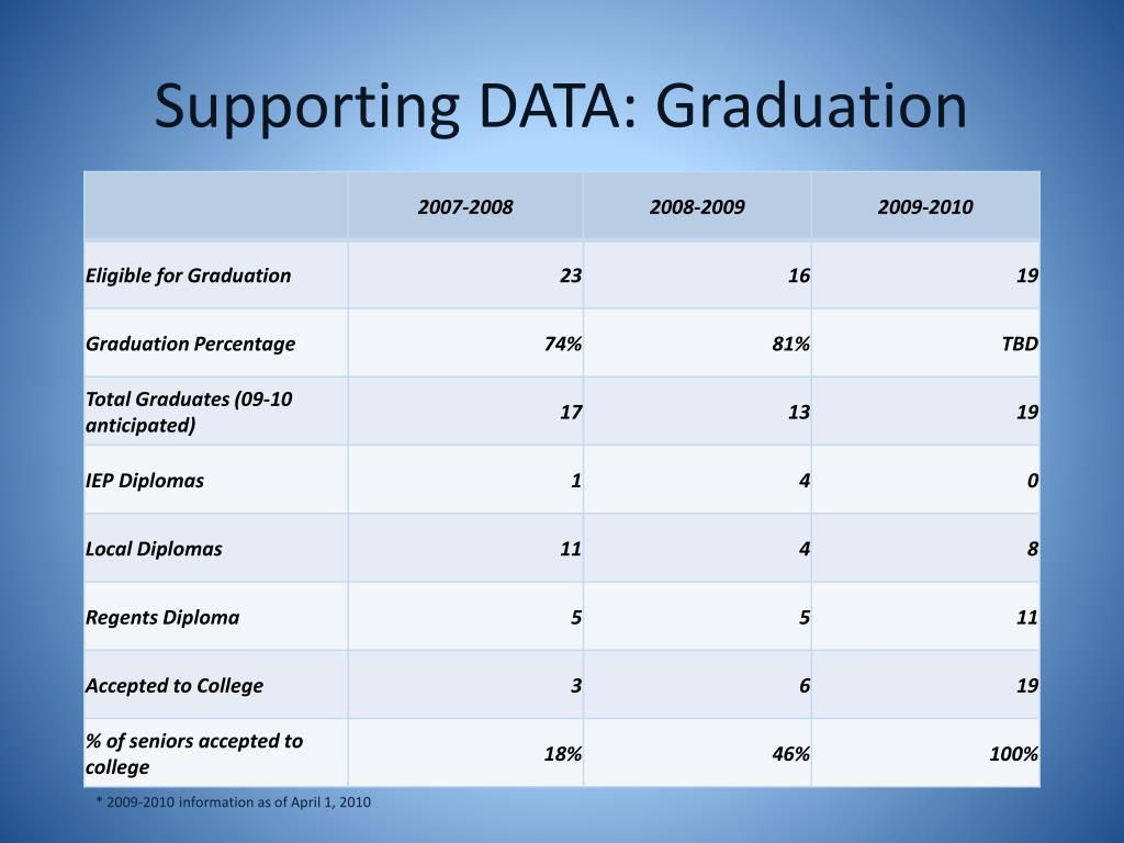 Supporting DATA: Graduation * 2009-2010 information as of April 1, 2010