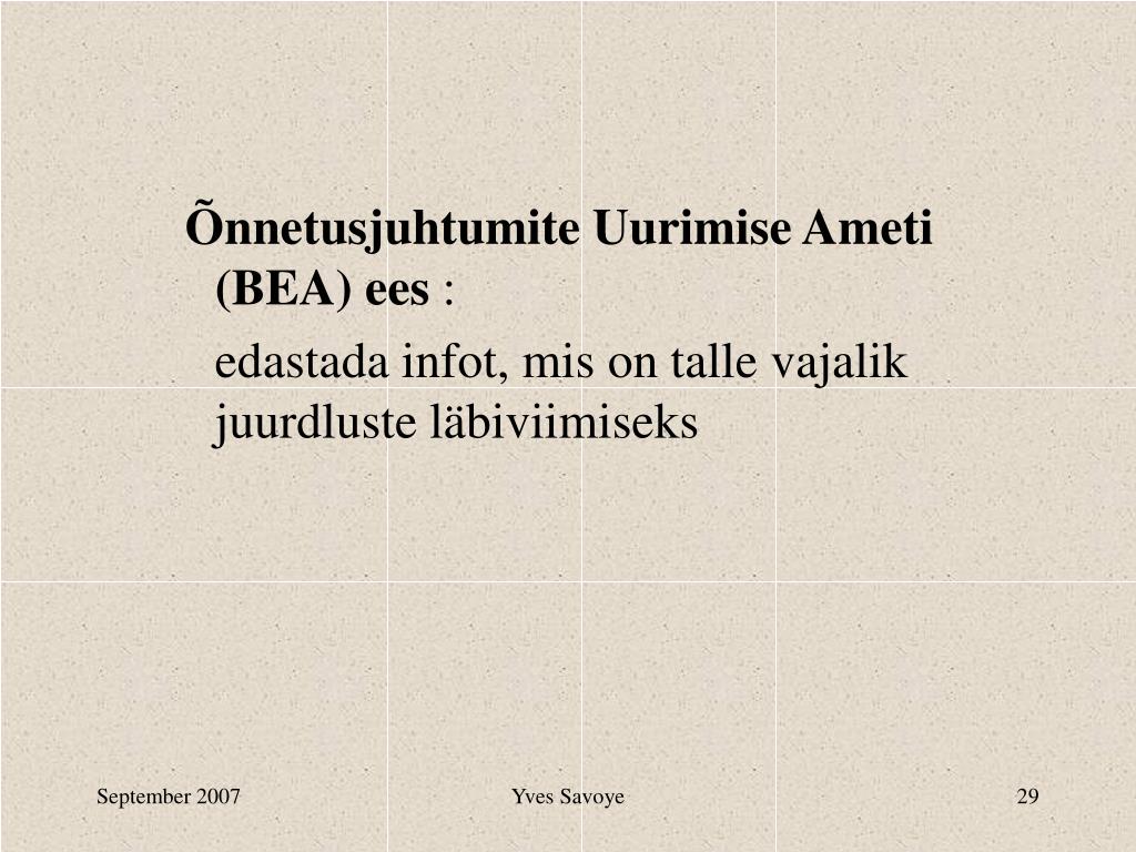 Õnnetusjuhtumite Uurimise Ameti (BEA) ees : edastada infot, mis on talle vajalik juurdluste läbiviimiseks Yves Savoye