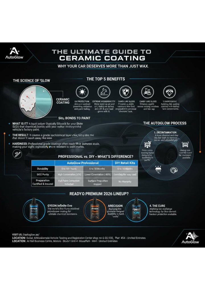 Why Your Car Deserves More Than Just Wax.<br>The Science of "Glow"<br>Visual Idea: A microscopic cross-section showing a jagged paint surface vs. a smooth, filled ceramic layer.<br> u2022 What is it? A liquid polymer (typically Silicon Dioxide, $SiO_2$) that chemically bonds with your vehicleu2019s factory paint.<br> u2022 The Result: It creates a semi-permanent, sacrificial layer of protection that doesn't wash away like wax.<br> u2022 Hardness: Professional-grade coatings often reach 9H on the pencil hardness scale, making your paint significantly more resistant to swirl marks.