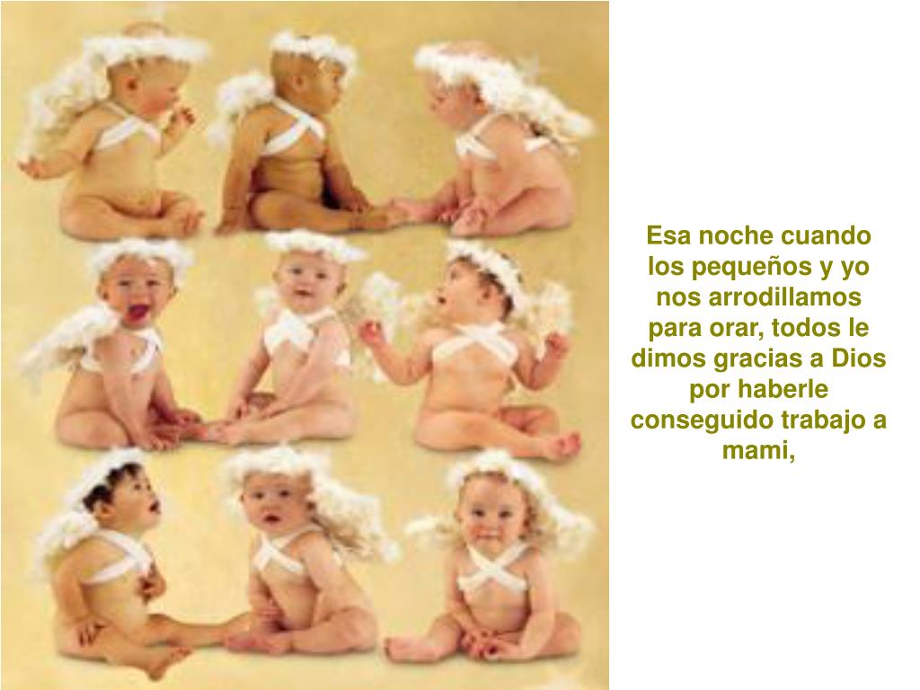 Esa noche cuando los pequeños y yo nos arrodillamos para orar, todos le dimos gracias a Dios por haberle conseguido trabajo a mami,