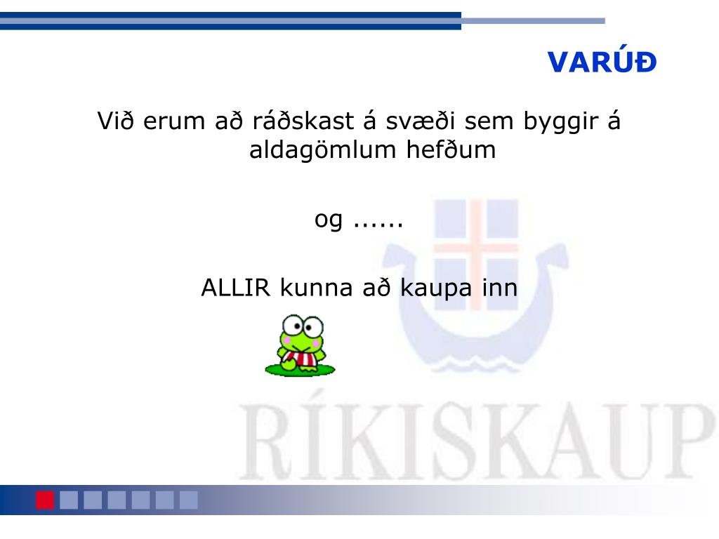 Gott að vita • Miðlæg skráning upplýsinga um samninga • Fækka innkaupaðilum og ferðum • Nýta upplýsingatækni • Eigið innkaupkerfi fyrir lagerstýrð innkaup • Markaðstorg fyrir innkaup sem ekki eru lagerstýrð • Innkaupakort fyrir tíð smáinnkaup