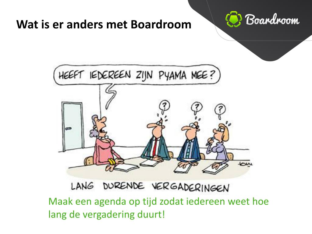 Wat is er anders met Boardroom Maak een agenda op tijd zodat iedereen weet hoe lang de vergadering duurt!