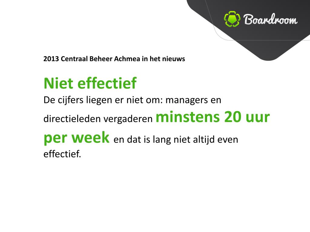 2013 Centraal Beheer Achmea in het nieuws Niet effectiefDe cijfers liegen er niet om: managers en directieleden vergaderen minstens 20 uur per weeken dat is lang niet altijd even effectief.