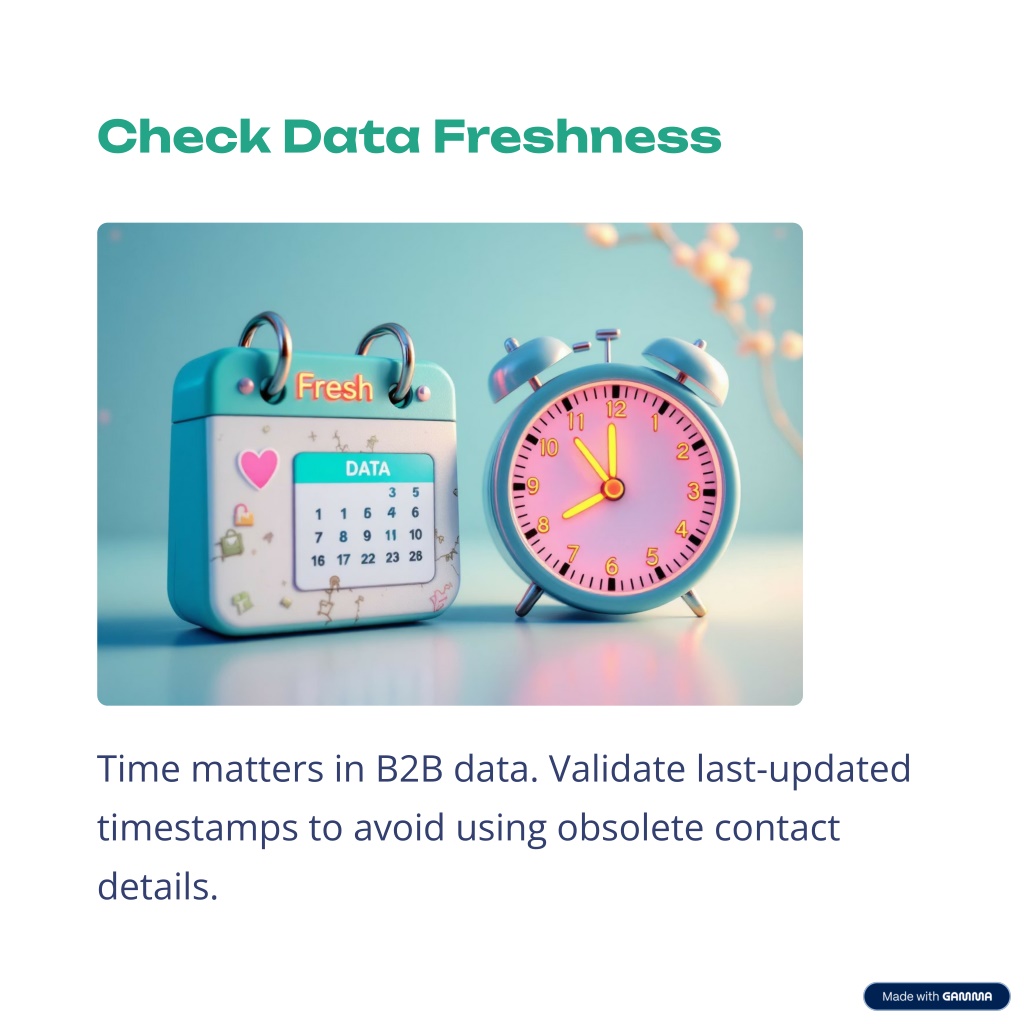 5. Check Data Freshness Time matters in B2B data. Validate last-updated timestamps to avoid using obsolete contact details.