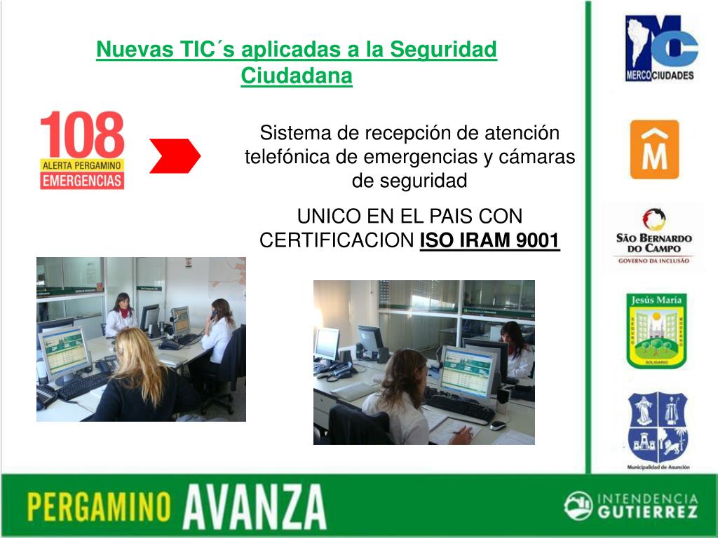 Nuevas TIC´s aplicadas a la Seguridad Ciudadana Sistema de recepción de atención telefónica de emergencias y cámaras de seguridad UNICO EN EL PAIS CON CERTIFICACION ISO IRAM 9001