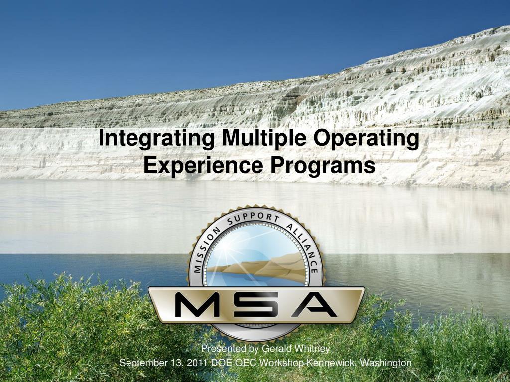 Integrating Multiple Operating Experience Programs Presented by Gerald Whitney September 13, 2011 DOE OEC Workshop Kennewick, Washington