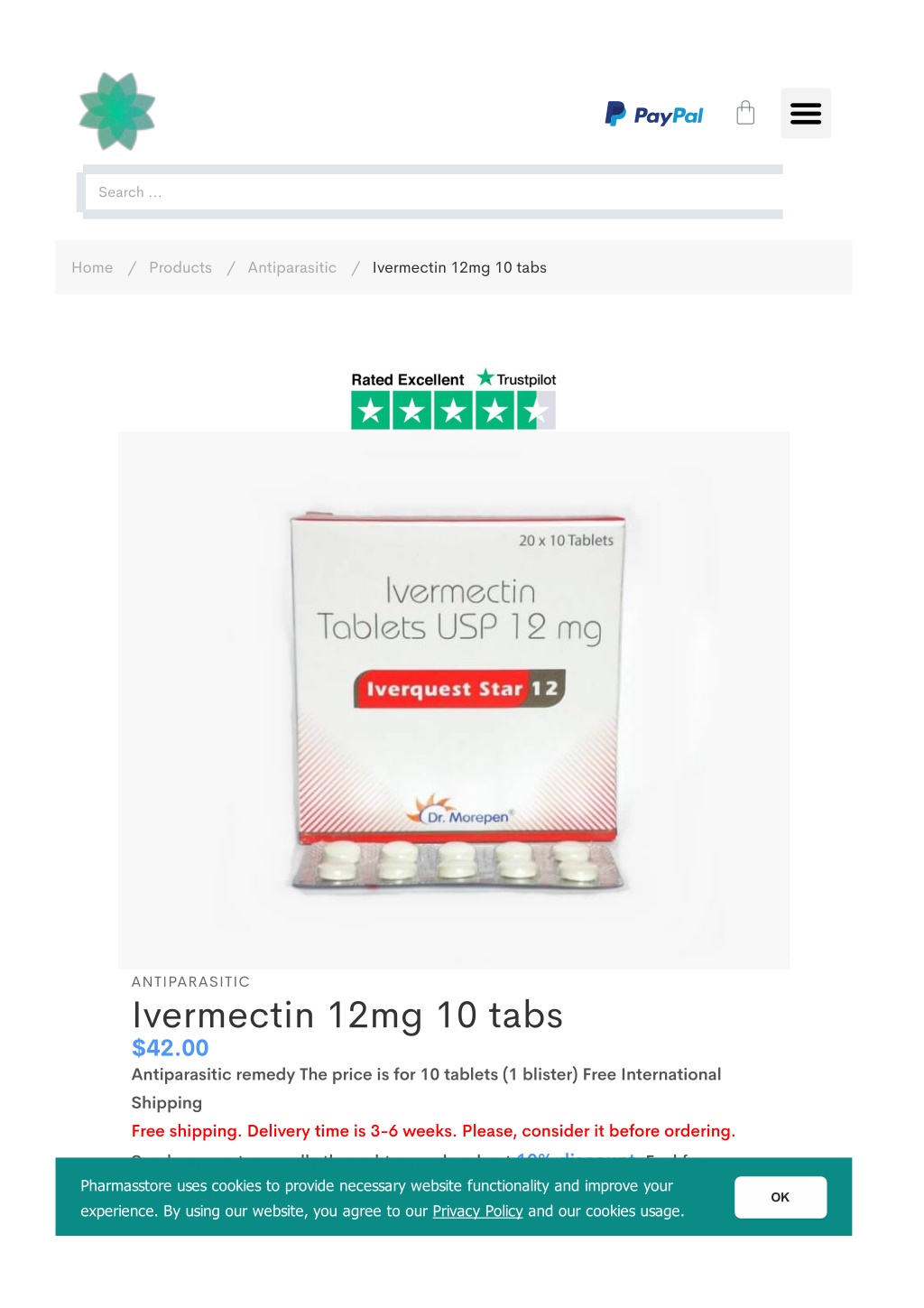 Search ... Home / Products / Antiparasitic Ivermectin 12mg 10 tabs / ANTIPARASITIC Ivermectin 12mg 10 tabs $42.00 Antiparasitic remedyThe price is for 10 tablets (1 blister)Free International Shipping Free shipping. Delivery time is 3-6 weeks. Please, consider it before ordering. Send payment manually throught paypal and get 10% discount. Feel free Pharmasstore uses cookies to provide necessary website functionality and improve your experience. By using our website, you agree to our Privacy Policy and our cookies usage. choosing this payment method during checkout process. OK