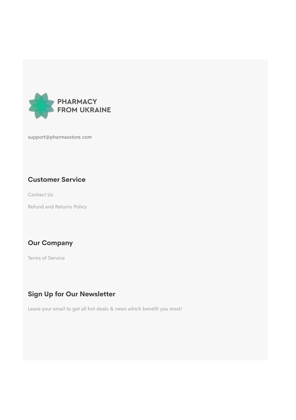 support@pharmasstore.com Customer Service Contact Us Refund and Returns Policy Our Company Terms of Service Sign Up for Our Newsletter Leave your email to get all hot deals & news which benefit you most!