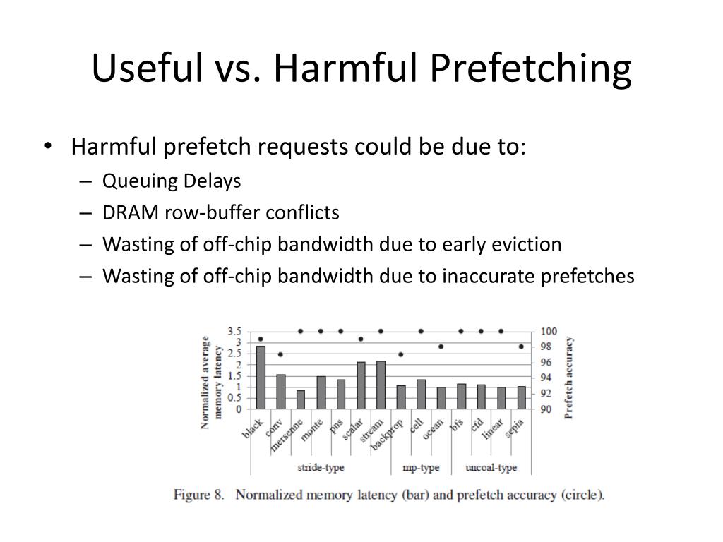 Useful vs. Harmful Prefetching • Harmful prefetch requests could be due to: • Queuing Delays • DRAM row-buffer conflicts • Wasting of off-chip bandwidth due to early eviction • Wasting of off-chip bandwidth due to inaccurate prefetches