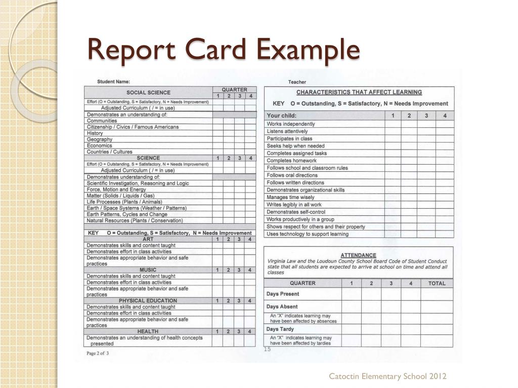 Report Card Example Catoctin Elementary School 2012