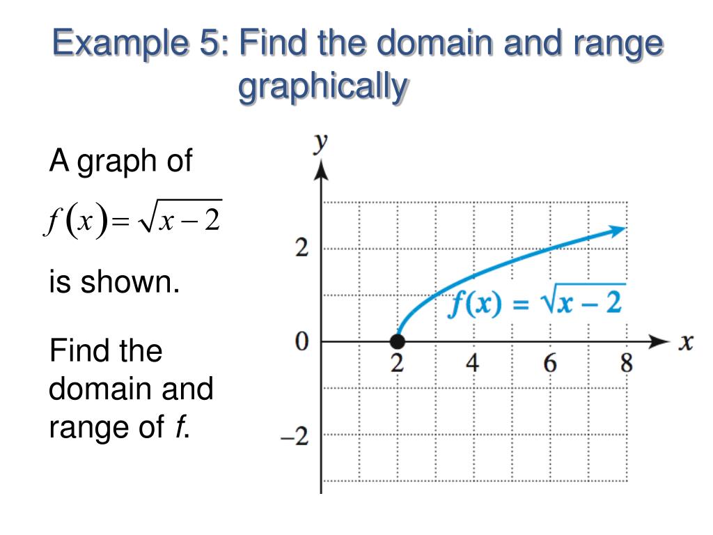 Example 5: Find the domain and range graphically A graph of is shown. Find the domain and range of f.