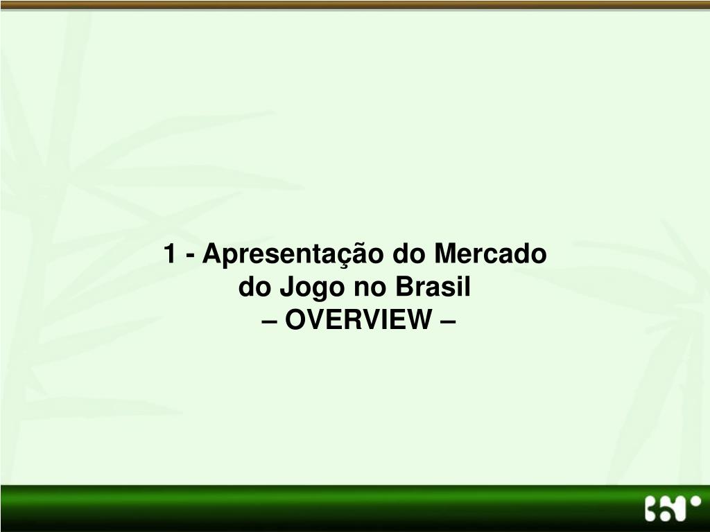 ComTech Planejamento de Marca e Estratégia de Lançamento. 1 - Apresentação do Mercado do Jogo no Brasil – OVERVIEW –. 1.1 - Situação Atual O mercado de jogos no Brasil é restrito e controlado. Poucas foram as mudanças no segmento, desde o fechamento dos Cassinos em 1946.
