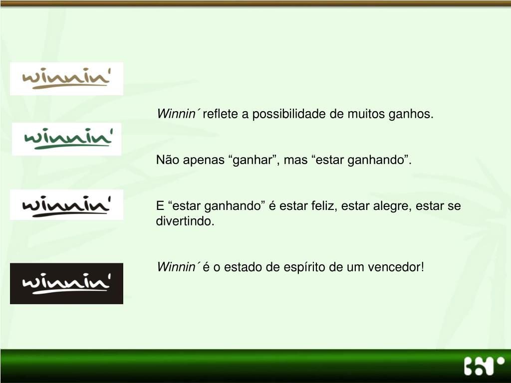 Winnin´ reflete a possibilidade de muitos ganhos. Não apenas “ganhar”, mas “estar ganhando”. E “estar ganhando” é estar feliz, estar alegre, estar se divertindo. Winnin´ é o estado de espírito de um vencedor!