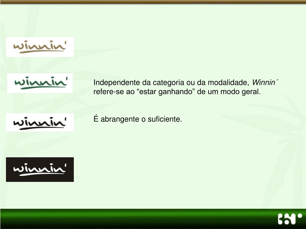 Independente da categoria ou da modalidade, Winnin´ refere-se ao “estar ganhando” de um modo geral. É abrangente o suficiente.