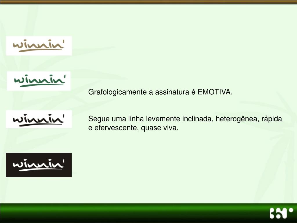 Grafologicamente a assinatura é EMOTIVA. Segue uma linha levemente inclinada, heterogênea, rápida e efervescente, quase viva.
