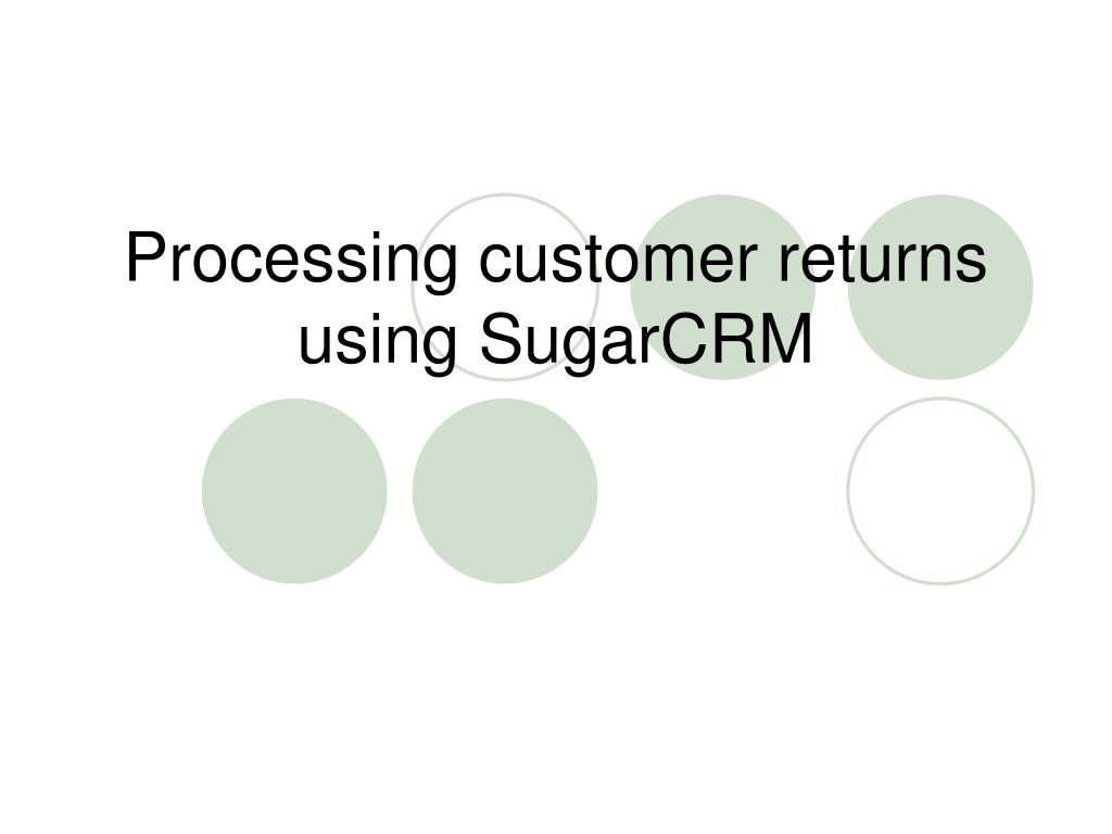 Processing customer returns using SugarCRM. Goods Arriving. When goods arrive back on an RMA log into Sugar with the details provided Click on the “cases” tab Find the RMA you require and click on the relevant “subject title” Click on Edit on top left hand corner. Editing.