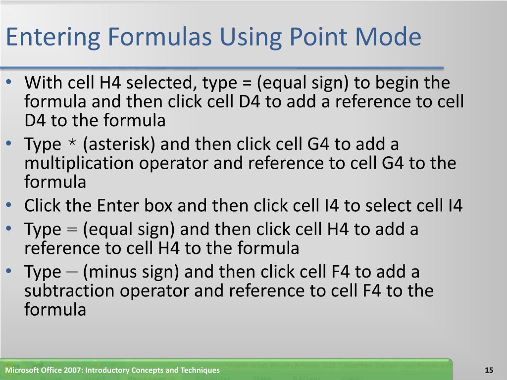 Entering Formulas Using Point Mode Microsoft Office 2007: Introductory Concepts and Techniques