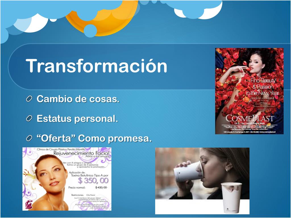 Transformación • Cambio de cosas. • Estatus personal. • “Oferta” Como promesa.