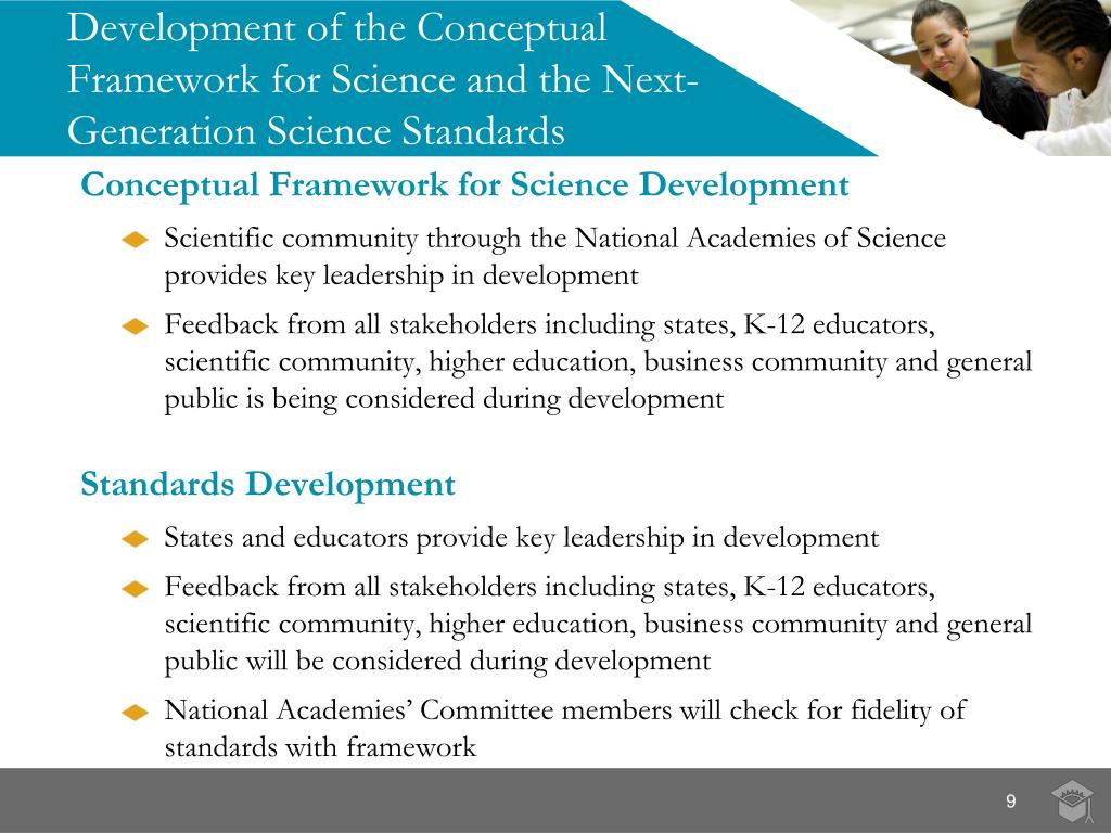 8 Conceptual Framework for Science Education and the Next Generation Science Standards Stephen Pruitt, Ph.D., Vice President, Content, Research and Development Source: