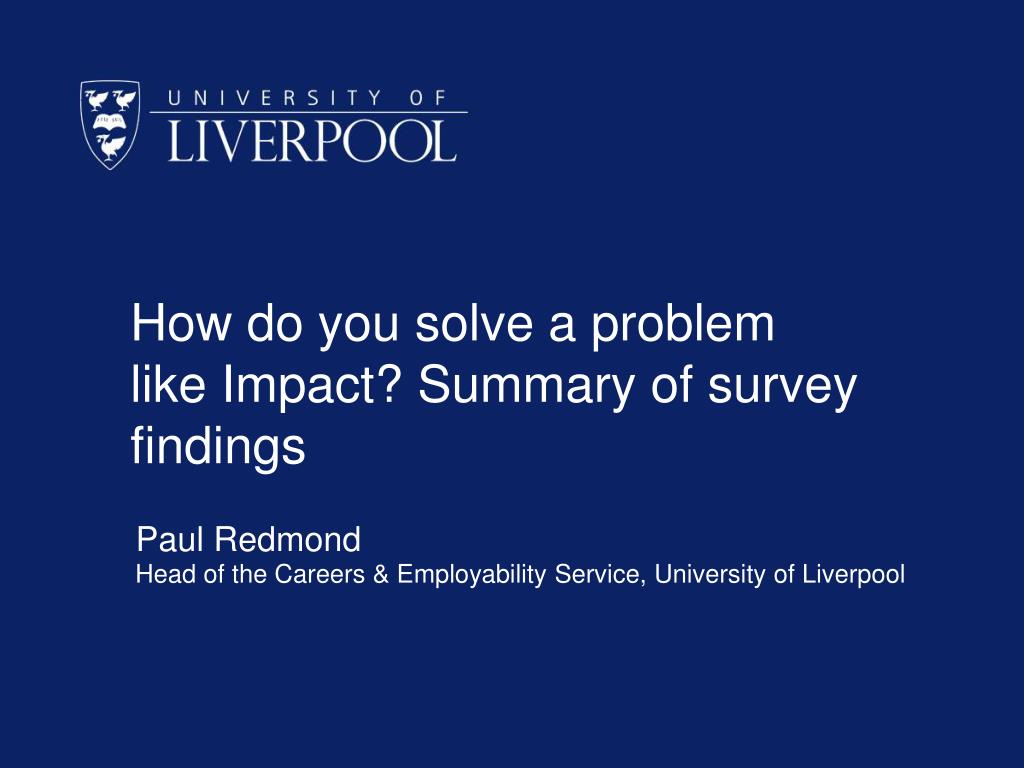 How do you solve a problem like Impact? Summary of survey findings Paul Redmond Head of the Careers & Employability Service, University of Liverpool