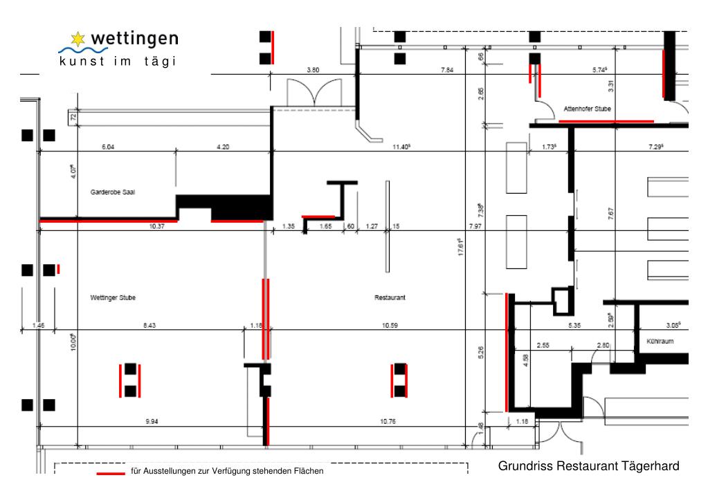 k u n s t i m t ä g i Grundriss Restaurant Tägerhard für Ausstellungen zur Verfügung stehenden Flächen