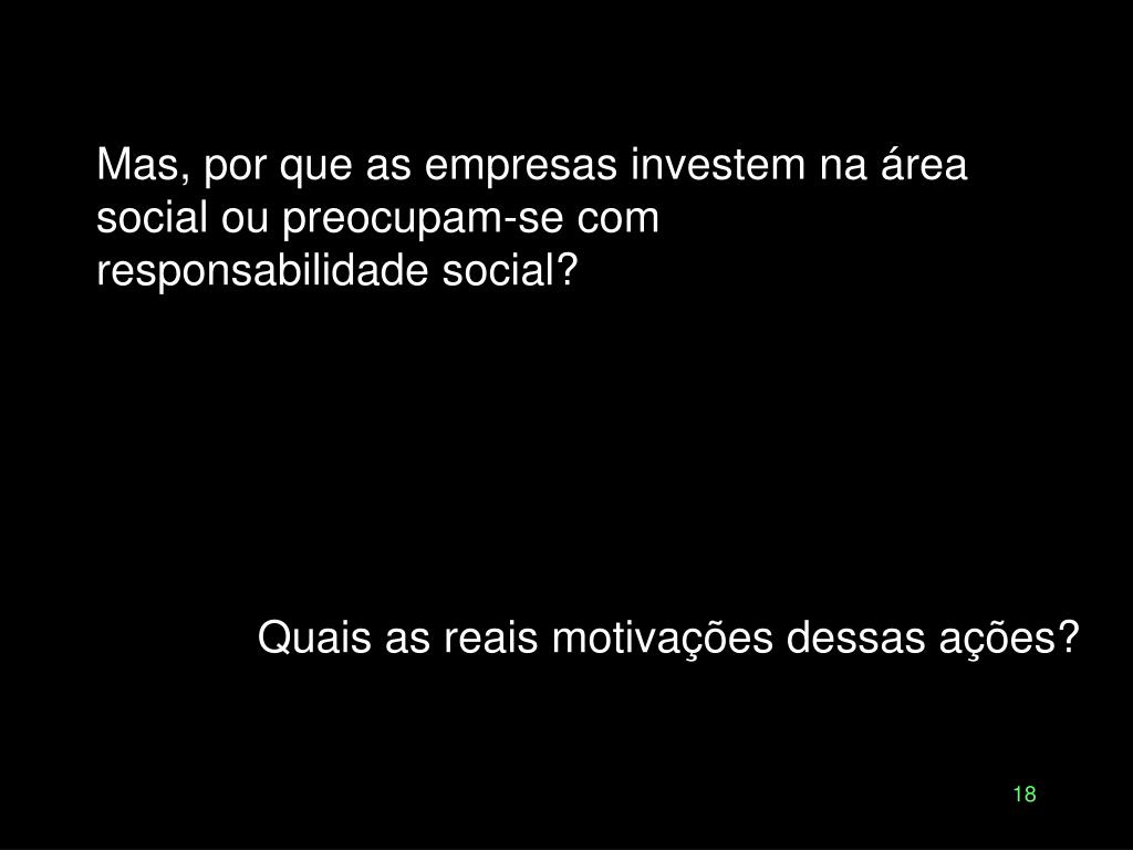 Mas, por que as empresas investem na área social ou preocupam-se com responsabilidade social? Quais as reais motivações dessas ações?