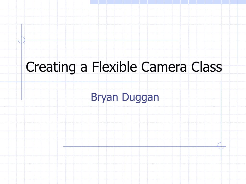 Creating a Flexible Camera Class. Bryan Duggan. Refresher on Vectors. u.v = (u x v x + u y v y + u z v z ) p = u x v = (u y v z - u z v y , u z v x - u x v z, u x v y - u y v x ). Identity Matrix. Identity Matrix.