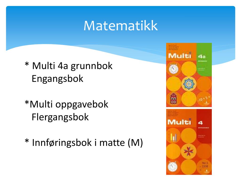 Matematikk • * Multi 4a grunnbok • Engangsbok • *Multi oppgavebok • Flergangsbok • * Innføringsbok i matte (M)