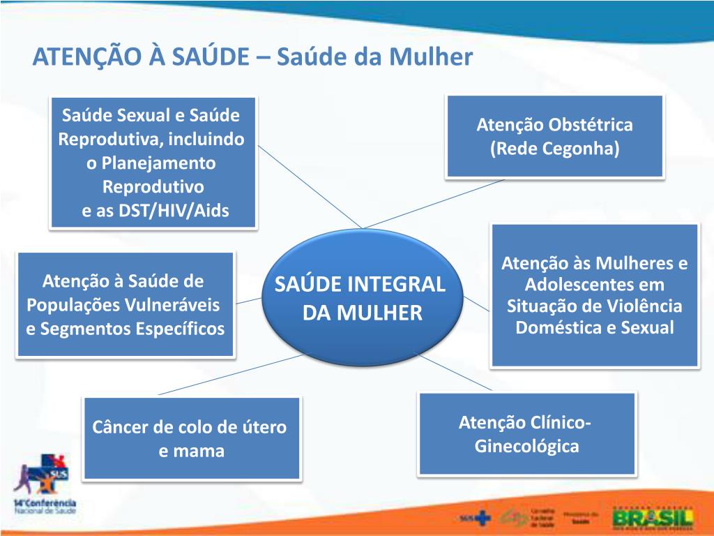 ATENÇÃO À SAÚDE – Saúde da Mulher Atenção Obstétrica (Rede Cegonha) Saúde Sexual e Saúde Reprodutiva, incluindo o Planejamento Reprodutivo e as DST/HIV/Aids Atenção às Mulheres e Adolescentes em Situação de Violência Doméstica e Sexual SAÚDE INTEGRAL DA MULHER Atenção à Saúde de Populações Vulneráveis e Segmentos Específicos Atenção Clínico- Ginecológica Câncer de colo de útero e mama