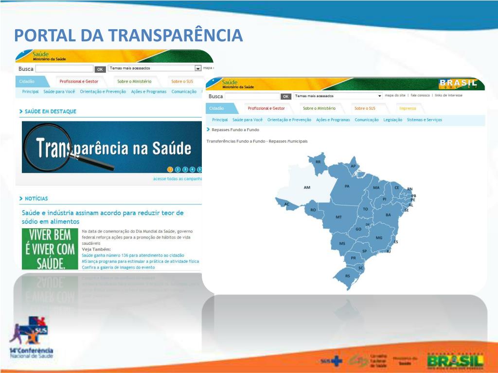 Controle, transparência e eficiência • Decreto que regulamenta a transferência Fundo a Fundo • Contas municipais específicas e meios rastreáveis (Decreto 7.507/11) • Regulamentação de 100% dos CNPJs dos fundos municipais • Novo Cadastro Nacional de Estabelecimentos de Saúde (CNES) • Descredenciamento de 7.891 agentes comunitários de saúde; 1.137 equipes de Saúde da Família e 914 equipes de saúde bucal, em 1.294 municípios • Implantação do Portal da Transparência • Adoção de novas regras para certificar entidades filantrópicas (CEBAS)