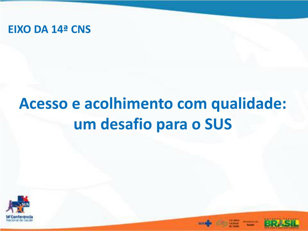 EIXO DA 14ª CNS Acesso e acolhimento com qualidade: um desafio para o SUS