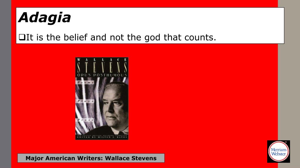 Adagia • It is the belief and not the god that counts. Major American Writers: Wallace Stevens
