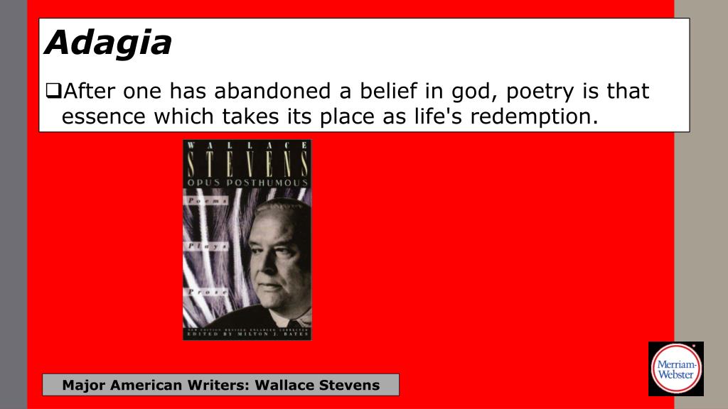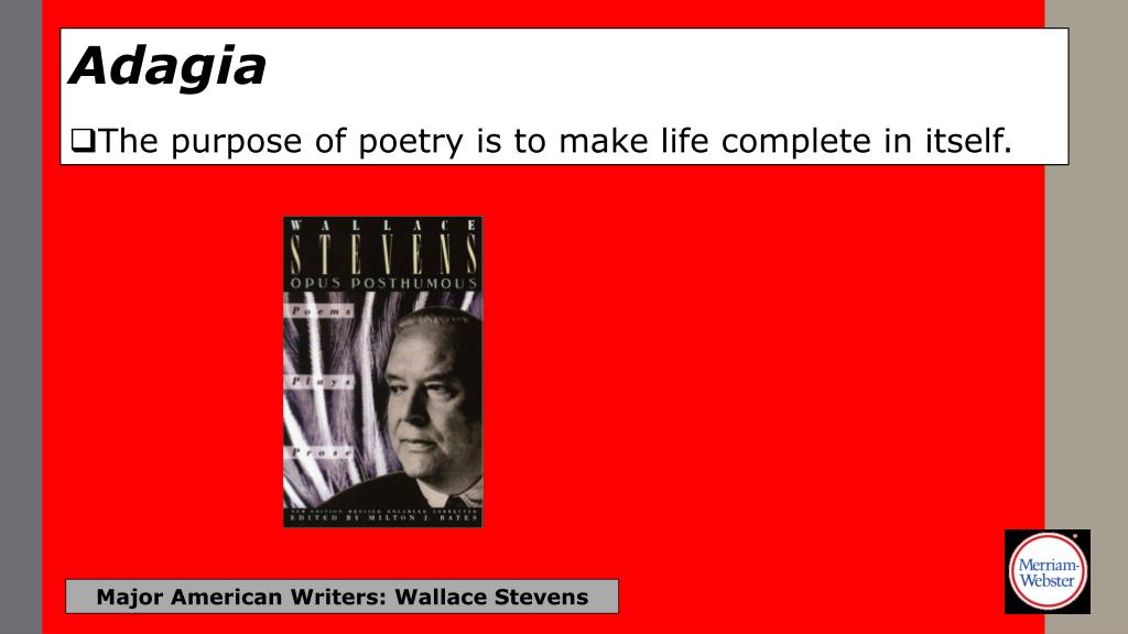 Adagia • Poetry is the gaiety (joy) of language. Major American Writers: Wallace Stevens
