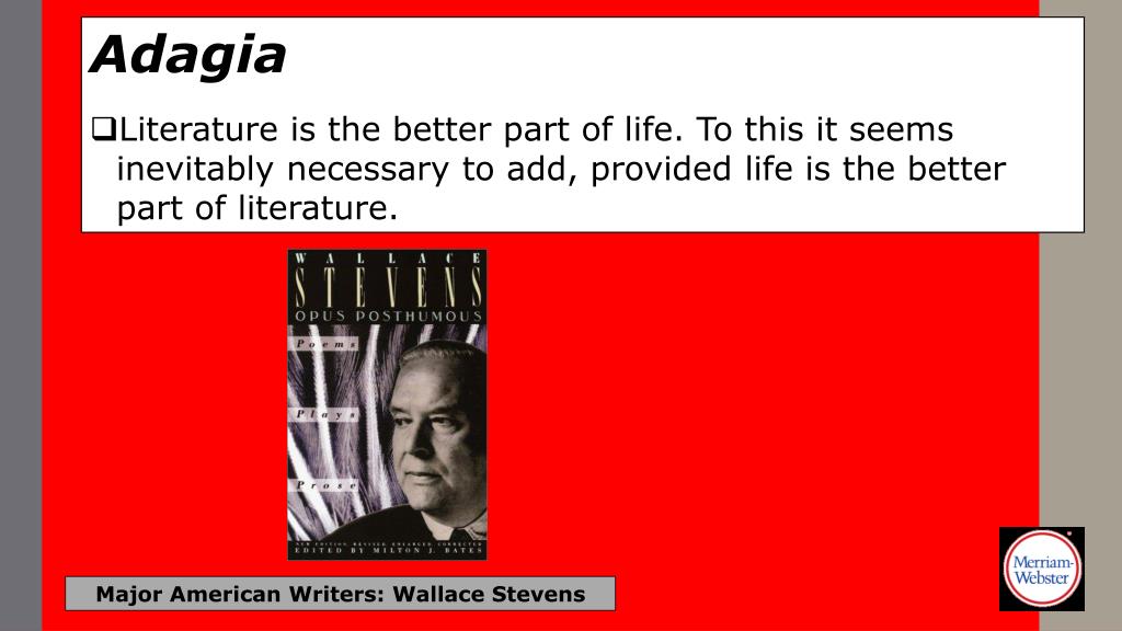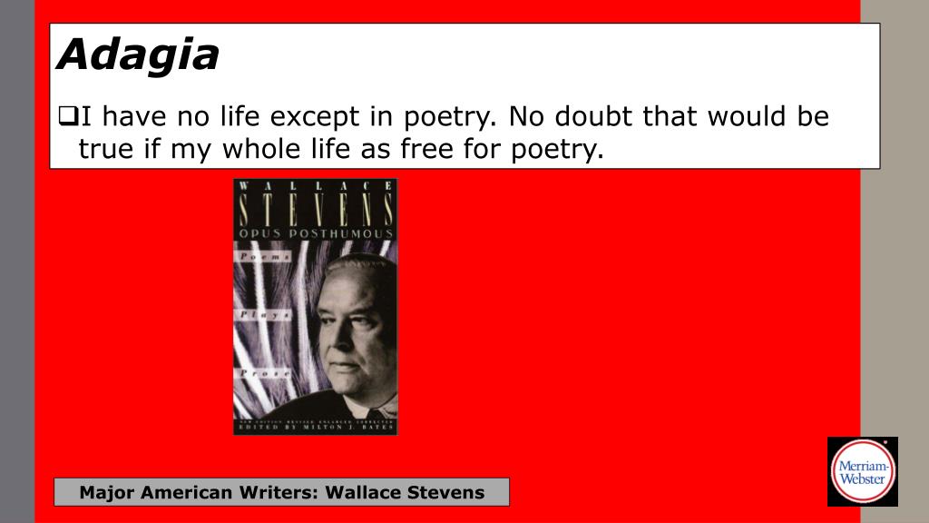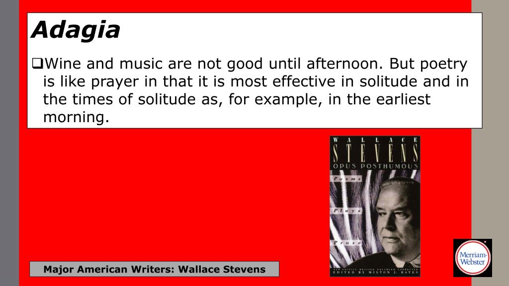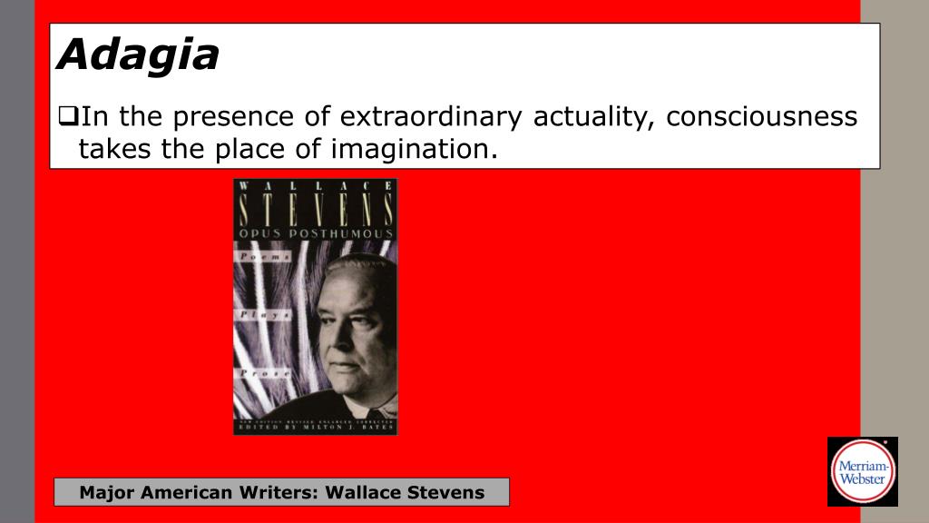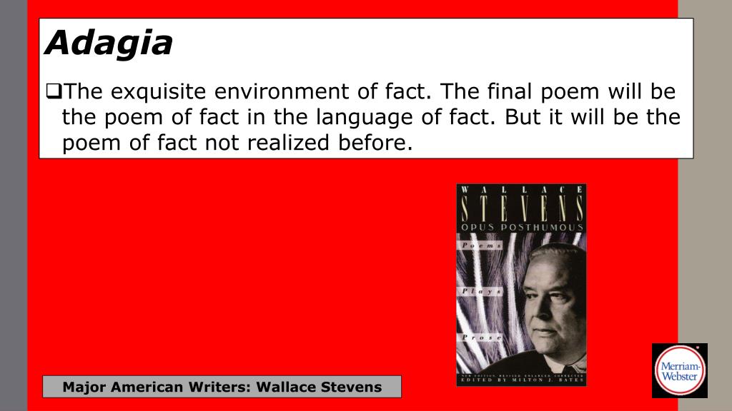 Adagia • Authors are actors, books are theatres. Major American Writers: Wallace Stevens