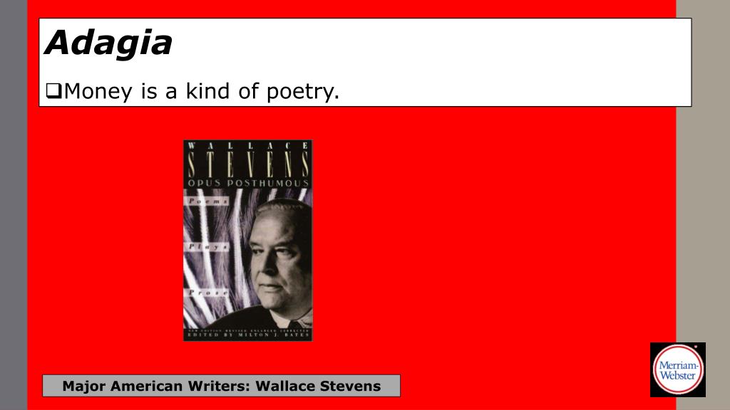 Adagia • Money is a kind of poetry. Major American Writers: Wallace Stevens