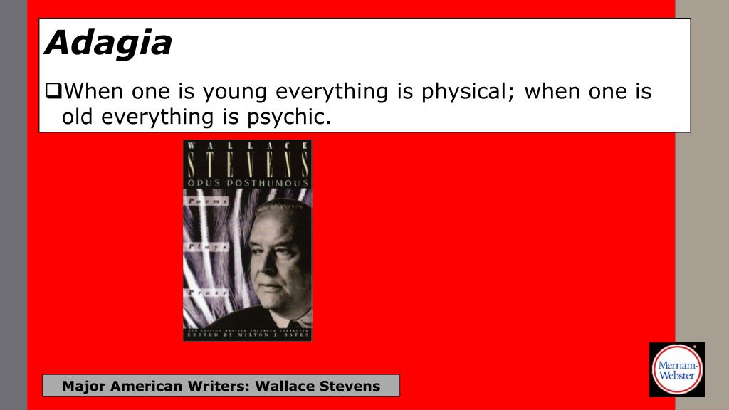 Adagia • When one is young everything is physical; when one is old everything is psychic. Major American Writers: Wallace Stevens