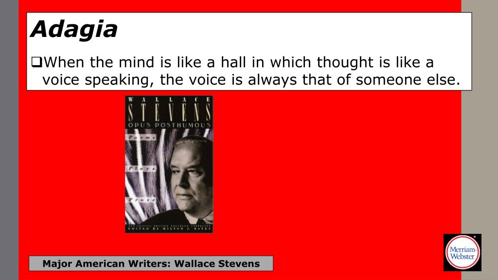 Adagia • When the mind is like a hall in which thought is like a voice speaking, the voice is always that of someone else. Major American Writers: Wallace Stevens