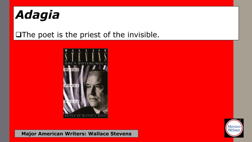 Adagia • The poet is the priest of the invisible. Major American Writers: Wallace Stevens
