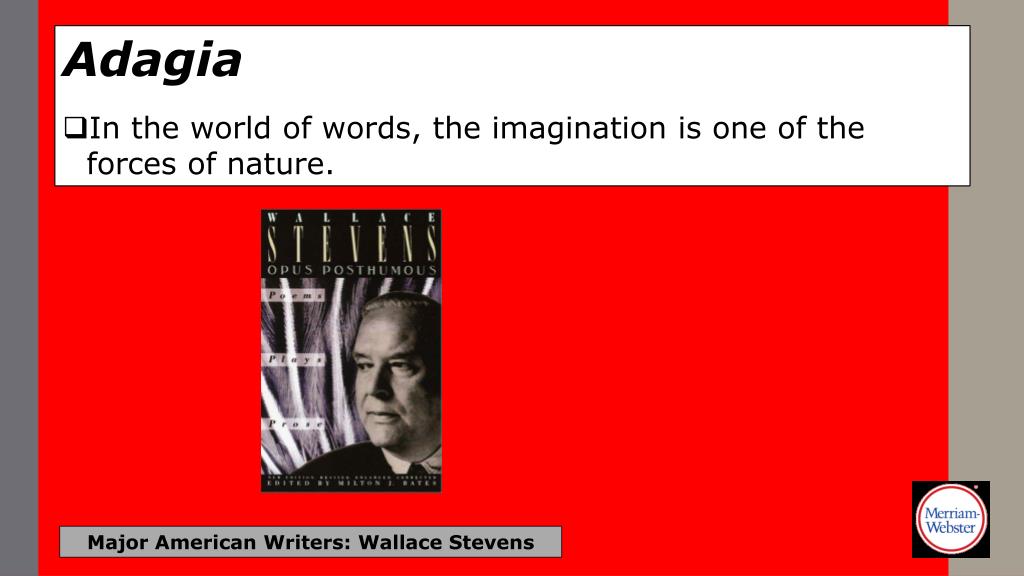 Adagia • In the world of words, the imagination is one of the forces of nature. Major American Writers: Wallace Stevens