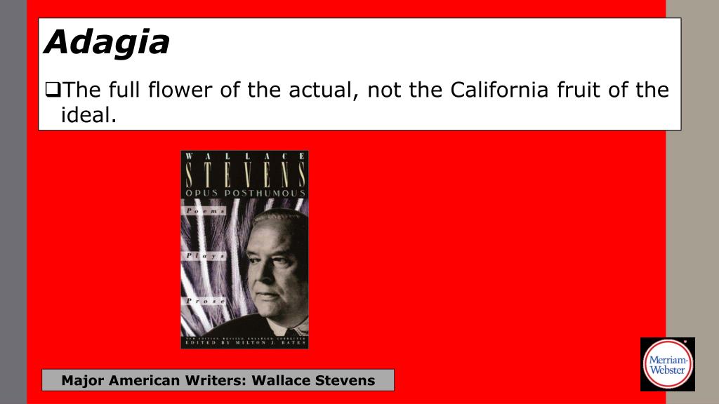 Adagia • The full flower of the actual, not the California fruit of the ideal. Major American Writers: Wallace Stevens