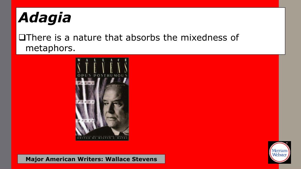 Adagia • There is a nature that absorbs the mixedness of metaphors. Major American Writers: Wallace Stevens