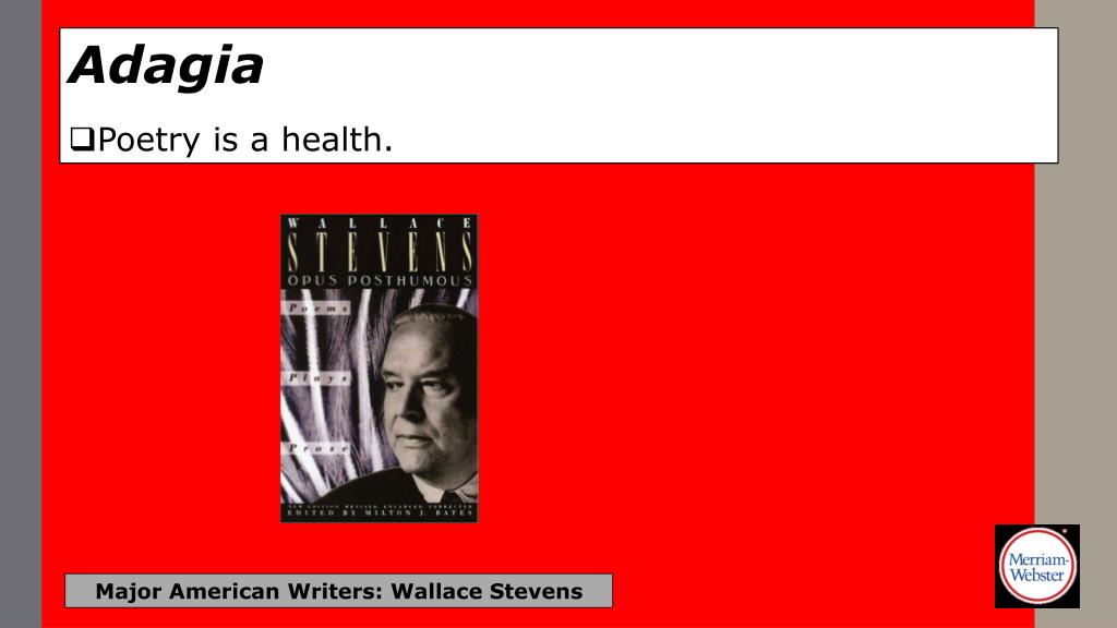 Adagia • Poetry is a health. Major American Writers: Wallace Stevens