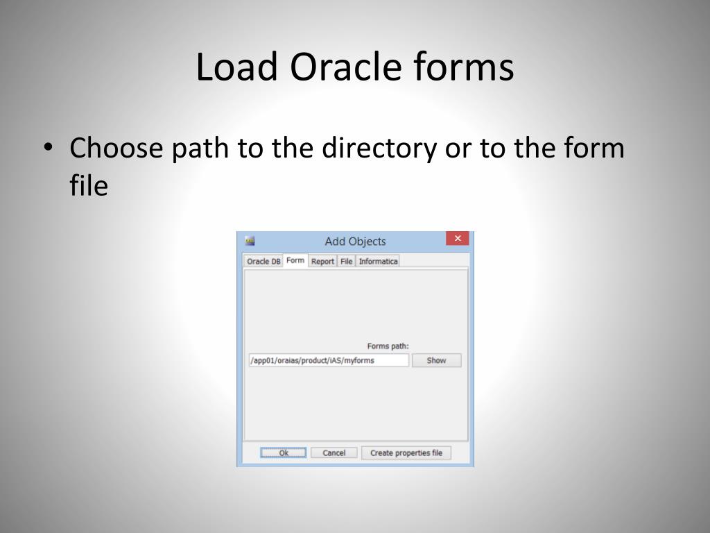 Load Oracle forms • Choose path to the directory or to the form file
