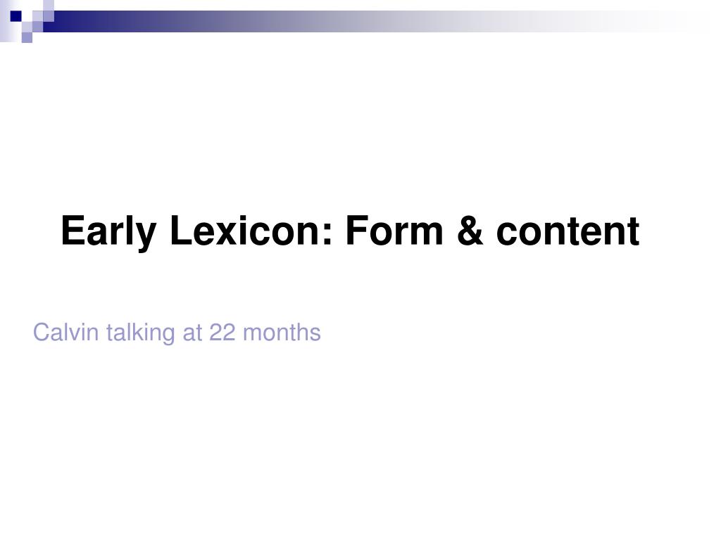 CDI & the Lexicon. 37-924-01 Sharon-Armon-Lotem Bar-Ilan University. Early Lexicon: Form & content Calvin talking at 22 months. First 50 Words of 1 Israeli girl (Keren) - in Order of Acquisition From: Dromi, E. 1987. Early Lexical Development. Cambridge UP. What is a word?.